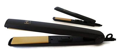 Hot N Hotter Gold Ceramic Hair Flat Iron 1" & 1/2" 2 In 1 Value Pack