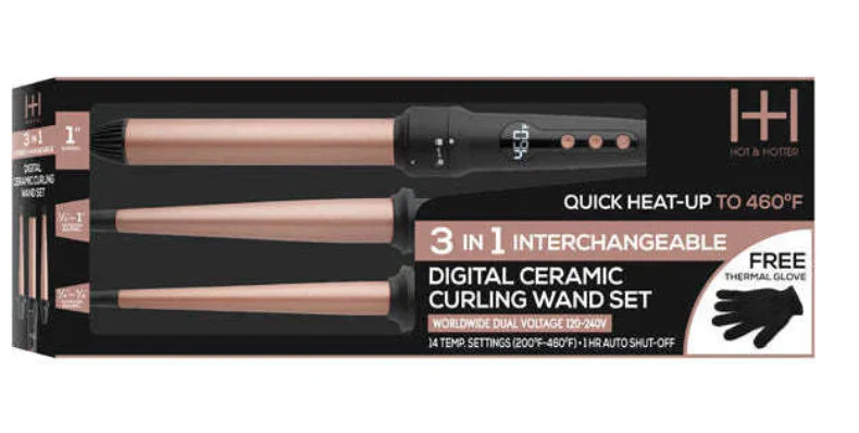 Hot & Hotter 3 in 1 Interchangeable Digital Curling Wand Set