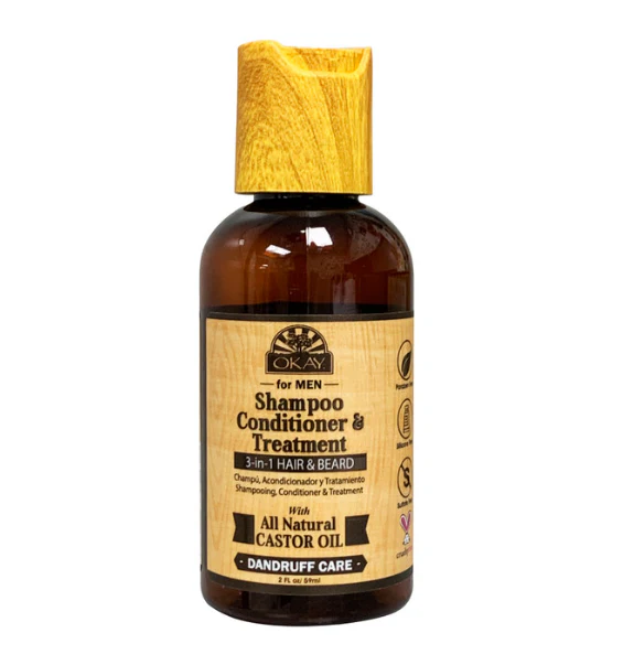 Okay Men Castor Oil Beard and Hair 3 in 1 Shampoo, Conditioner, Dandruff Treatment